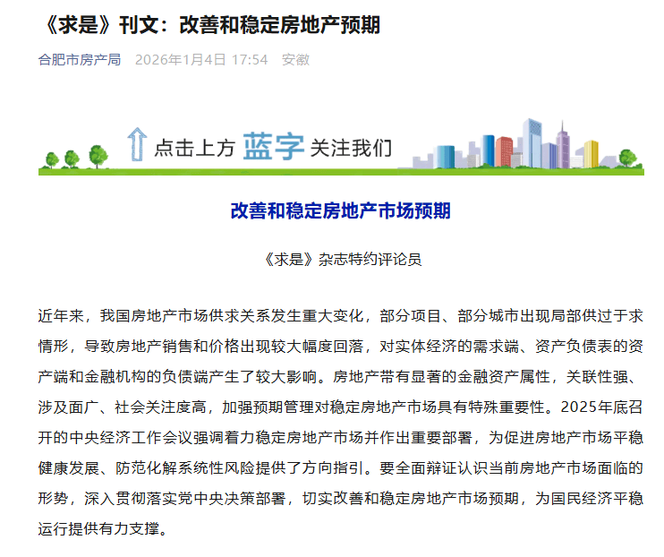 2026年合肥楼市走向,受政策与基本面双重影响。一方面,权威声音明确房地产金融属性。例如《求是》杂志引用国际数据指出,发达国家房地产业占比GDP超10%,仍是经济稳定支柱。我国城镇化率67%但户籍城镇化率不足50%,新市民、大学生刚性需求待释放,每年潜在住房更新需求约7亿㎡。